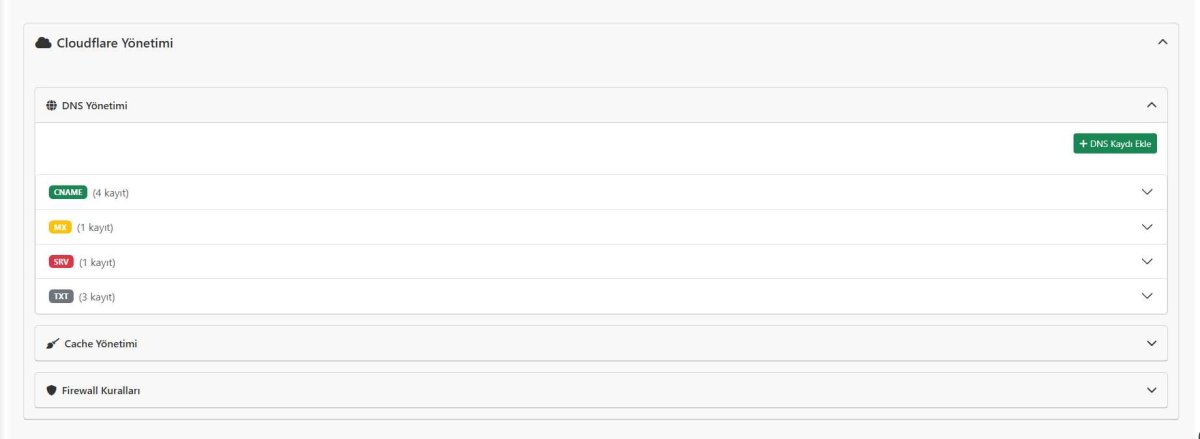 - Bu ekran üzerinden Cloudflare ayarlarınızı kolayca yönetebilirsiniz.